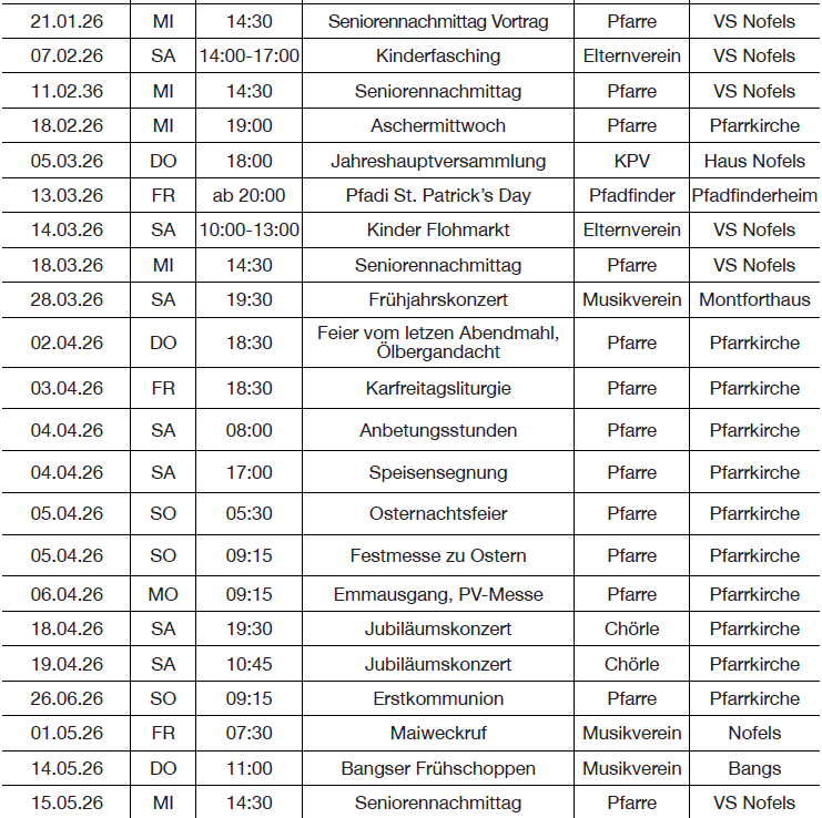 Nofler Termine:
